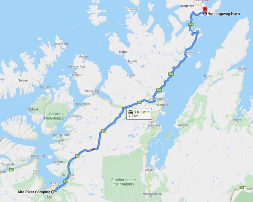 There are actually two promontories on the island and, oddly, the second northernmost point is Knivskjelodden (71°11’4.80″ N 25°40’32.39″ E), which is next to Nordkapp to the west. The Nordkapp itself, is only third.