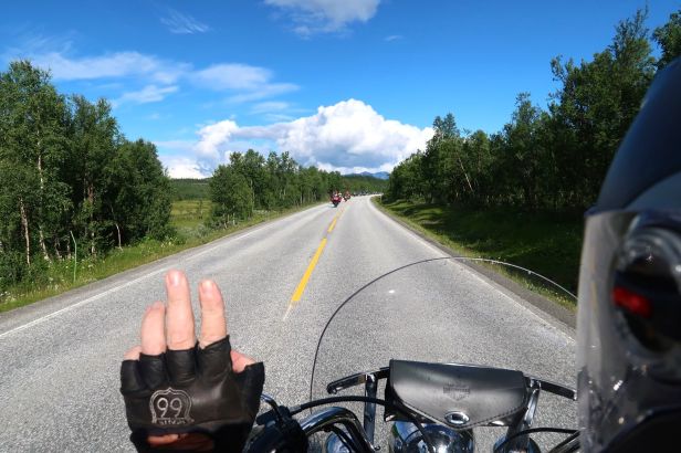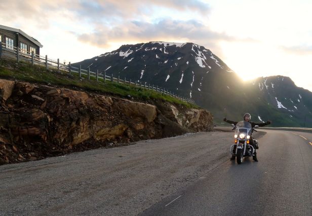 At the third stop, in a reversal of the “norm”, a rainbow appeared, quickly followed by a shower of rain. It was nothing big, just a short downpour and easily deflected by the Harley’s windscreen. By the time a rainbow, followed by a shower, appeared for the fifth time, we began to understand the Norwegian “rainbow-shower rule“. We agreed that our relationship with the rainbow would never again be the same again as it had been before the trip.