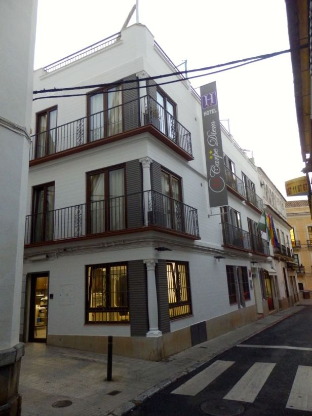 As we approached Cordoba, the Harley’s navigation started to play games ! It repeatedly tried to get us to turn off of the highway in what was patently the wrong place. But then, just to confound us even more, it then took us infallibly through scores of twists and turns, directly to the front door of our hotel, the Carpe Diem. When I tried to look at how we had got there on the street map, I realised we had got to the hotel by a route we would never have found.
