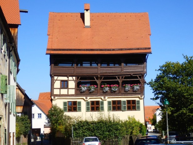 It is a very lovely place. Despite the depredations of various wars including two significant battles (in 1634 and 1645), during the Thirty Years’ War. It still has its city wall, around which we made a pleasant walk and you enter the town by one of its medieval gates set at the compass points. A lot of the beautifully preserved buildings have a slightly “shimmery“ look. They are constructed principally from a rock called suevite that was created by the heat of the meteor impact and contain billions of microscopic diamonds !