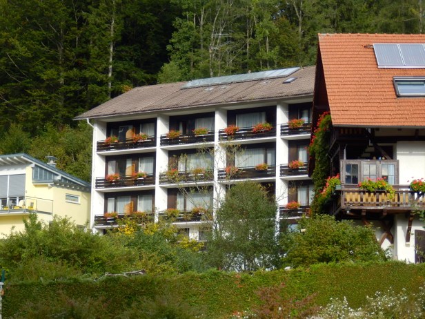 The problem with riding around Bavaria is that, eventually, all the towns begin to blend into a single, mental image. They are all beautifully quaint, extraordinarily well kept and a joy to behold. Sadly, this does tend to make them a bit “samey“. Füssen was no exception to this rule but it did, at least, have a backdrop of fir tree covered mountains between what appeared to be every small gap in the buildings. We wandered the central, pedestrianised, square and tried not to wince too hard at the epic prices in the cafes. The town’s proximity to the tourist draw of nearby Neuschwanstein Castle also meant that hotel prices were fairly astral. I had been recommended to one in particular, the Hotel Sohne and it did indeed look like a fabulous place. Sadly, when we saw its posted tariff we were in immediate agreement that it was way too high. Just because you can afford to do something does not always mean you are obliged to do it. A quick search on the internet revealed a more “touristy“ place about a kilometre away where the price for a night was under half that of the Sohne, so we went there.