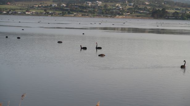 We left quite early, so as to be able to cross Hobart before the traffic built up. In a quiet bay on the Derwent, close to the pontoon bridge we saw some of Tasmania’s fabled Black Swans.