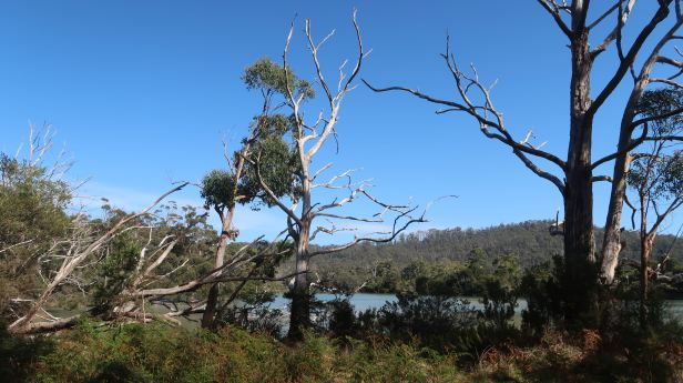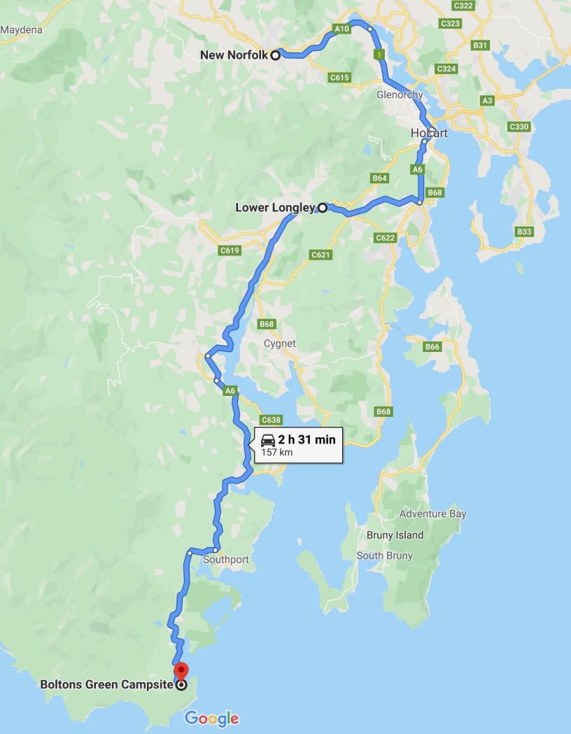 We navigated the city without a problem, but we did not need to brave the bottleneck crossing of the River Derwent. South of Hobart, our route hugged the Derwent estuary for quite a while before cutting inland and then back down to banks of the Huon River before arriving at the coast proper.