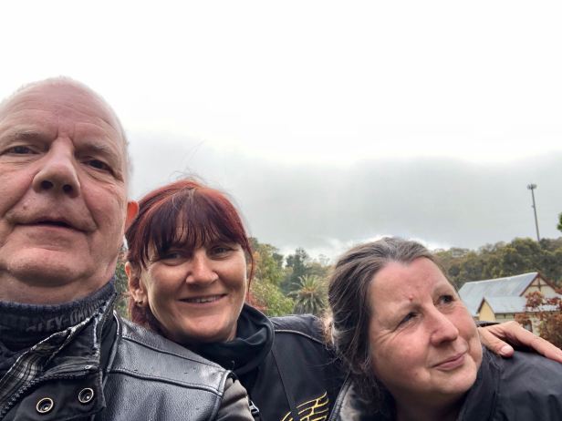 So, for the second time in quick succession, we changed our plan. This meant we took a slightly different route to that which had we originally intended, but Mapy informed us we had less than 45 kilometres to ride. Those quickly turned into the worst 45 kilometres of our entire trip. Almost as soon as I went straight ahead, the road out of Ballarat began to dwindle in width and became a narrow tree fringed lane. Mount Egerton is not exactly in the mountains, but it is high up. The road began to undulate, quite dramatically, but whilst still climbing steadily overall. The rain redoubled and the wind rose to the point where it was effectively raining horizontally. A small sign pointed up an even narrower road to Mount Egerton and, as we turned, the persistent rain and strong wind turned abruptly into a blizzard. Only two days before we had been boiling to death and now my visor was clogged with sleet.