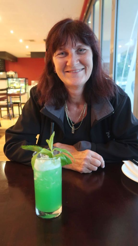 In those few lines above, it looks as if we did not do much, but we saw a lot of the city and we were glad we had the chance. We had dinner just around the corner from the hotel, in a Vietnamese bistro. We sat by the window and drank vivid, green drinks. Outside, we could see across a green park, with palm trees, to the Swan river beyond it.