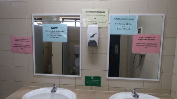 We made a refreshment stop at the Widgiemooltha Roadhouse. It broke the final leg of that day’s journey almost in half and we were keen to have a quick “pre-inspection” as we were scheduled to stay there on our way back. It was a very lonely and more than slightly dilapidated establishment whose staff seemed to be mainly composed of cheerful teenagers. Our snack was surprisingly good but the whole place had a tired air about it. This was not in the least alleviated by the shimmering of yet another vast body of water, this time Lake LeFroy, that were clearly visible through the bush. We knew that, when we slept there on our return, it would be a few levels down from anything we had seen so far.