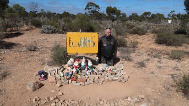 We made our stop to stretch and encountered a cute little roadside curiosity. The next roadhouse and petrol were still some way ahead, at Balladonia. In the parking area we chose, there were a large number of garden gnomes, grouped together, in front of a sign saying “BallaGnomeia”. Weird humour obviously thrives in Western Australia. I was taken by the fact that various people must have brought the gnomes there specially. A garden Gnome is not the sort of thing, after all, that you would “just happen to have” in your car.