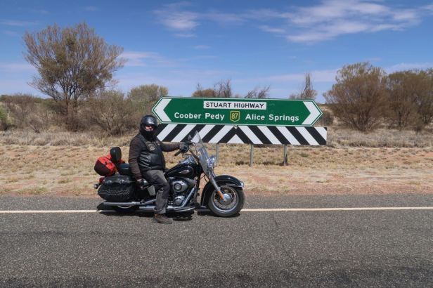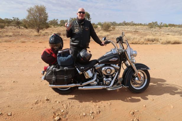 The next halt was the roadhouse at Ghan where we finally stopped heading north on the A87 Stuart Highway and made the turn west onto State Route 4, known as the Lasseter Highway. As a significant junction, it was very busy indeed. As always, I refilled the Harley and whilst Lucie went to pay, I rode it about 10 metres into the shade. My helmet was on the backrest and, immediately, a policeman appeared and began to harangue me for not wearing my helmet ! I expect he was bored, at least he did not give me a ticket.