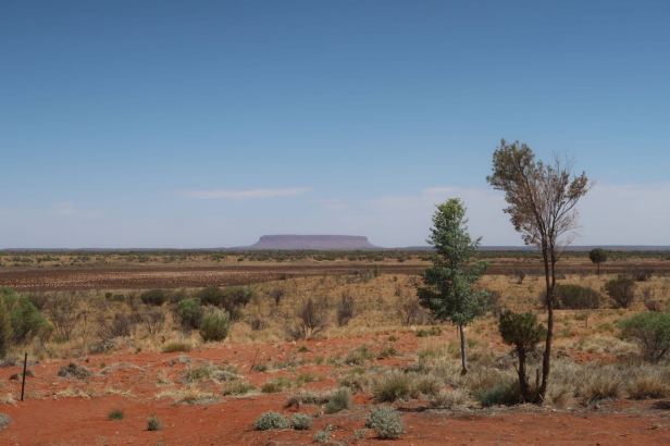 Despite the murderous heat, as soon as we were slightly cooler we moved off again to cover the next 100 kilometres to the next roadhouse at Curtin Springs. In the middle distance, to our left, which was nominally south, a large reddish-brown outcrop of rock appeared. For a few seconds my hot brain entertained the notion that this might actually be the fabled Uluru. The visibility was good – but, surely, not that good. Then common sense, of course, coupled with a voice in my earphone soon made me realise my error. What we could see was, in fact, another monolith, called Mount Conner. Some people we met later, at Uluru, told us that, over time, quite a large number of travellers have come all the way up from the south, spied and photographed Mount Conner and then turned around and gone back in the belief they HAD seen Uluru. Mount Conner was impressive, by any standard but, believe me, compared to the real thing, it is almost like a pebble.