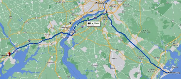 Almost at once, I joined the I-95, yet again. I have not measured, but it often felt that I spent more time on the I-95 than I did upon Route 66. Delaware is actually a small and curiously shaped State and, almost before I knew I was in it, I crossed yet another State Line, this time back into Maryland. Just to be contrary, I left the I-95 again for Route 79 and then took Route 40 south. It was coming on towards late evening and the Route 40 ran through a town called Perryville so I thought I might try and stay there. In the end, although I did see a sign for a trusty Motel 8, it turned out to be a little further south. With a feeling of deja-vu, I crossed the Susquehanna yet again, passed through Havre-de-Grace (which sounds cuter than it actually is) and located the Motel 8 (1008 Beards Hill Rd, Aberdeen, MD 21001). It was as clean, friendly and well equipped as I had come to expect and I easily secured a room.