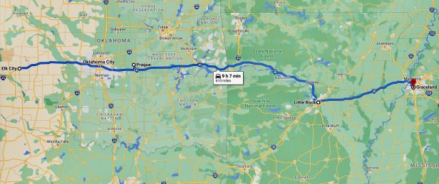 The road then dipped slightly south of east towards Little Rock, the State Capital which it neatly bypassed and began to climb slightly north of east again. Memphis appeared on the signposts.
