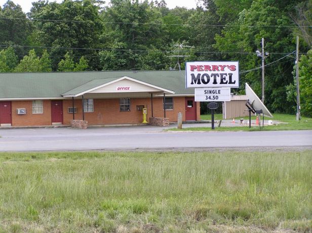 Not long after leaving Little Rock, somewhere near the town of Lonoke, I encountered Perry’s Motel and Restaurant, which claimed to be owned and operated by “Hill Billys” (their spelling !) but I was not sleepy and I was still trying to evince concern for my waistline, so I passed on by. Judging from the sign, it probably served “road-kill” anyway !
