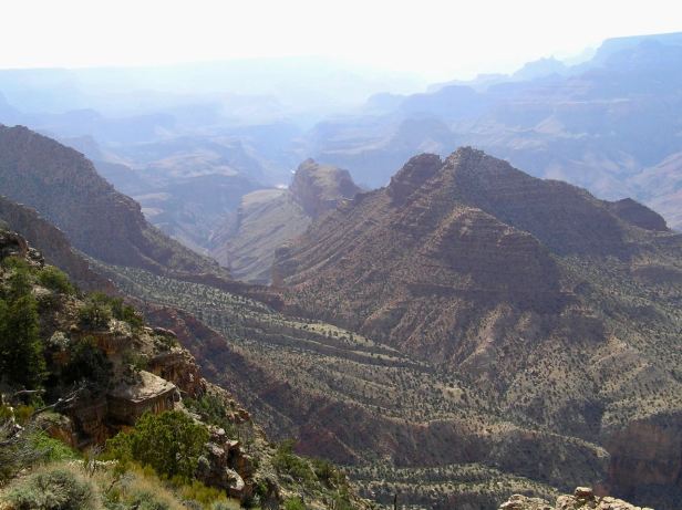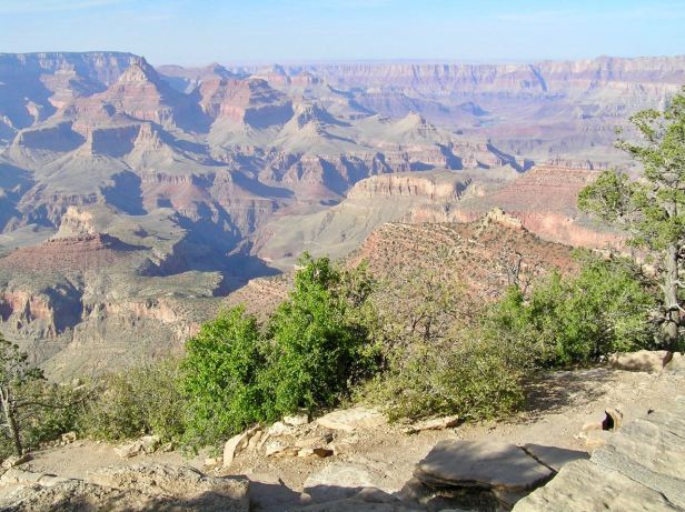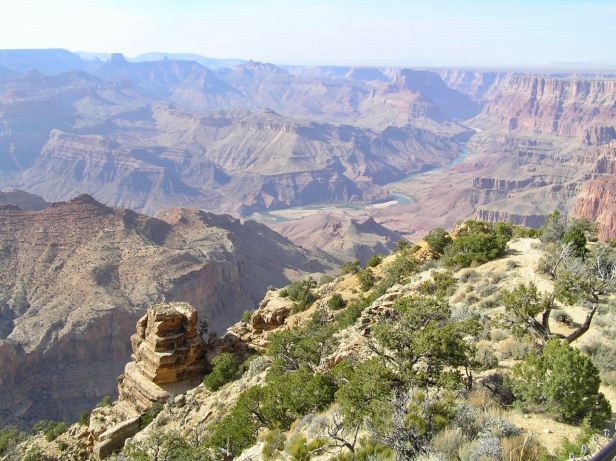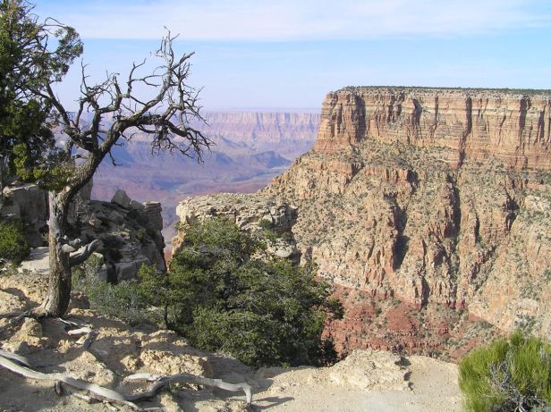 Having abandoned my attempts at individuality that watching from the North Rim would have underlined, I chose to go totally mainstream and take my photographs from the Grand View Point which is close to the Grand Canyon Village. When you actually stand there, words sort of fail you. No clever arrangement of adjectives can adequately describe the sheer magnificence of what you can see. We have all seen it on documentaries – but a camera cannot really capture it either. In those days, memory card technology was not what it is now and I had always been aware that I could only take about 400 pictures during my whole trip. For that reason I had “husbanded” my snapping a bit, but on that rim, I went a bit crazy. Some of the pictures I took are quite good photographs, but they do not even begin to show it as it is. They cannot convey the dizzying drops, the heat, the dry, gritty wind, the faint smell of the pines or any of the true reality. Go there and see it for yourself.