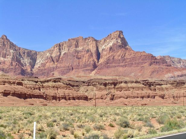 I continued on around the Route 89A through the area known as the Vermillion Cliffs. I have to say this was also truly spectacular and I wished with all my heart that I had a better camera because some of the most wonderful stuff was a little bit distant and hazy in the heat.