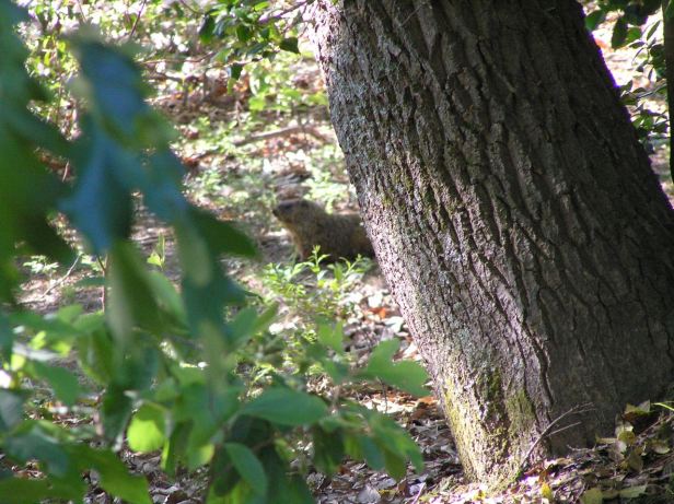 I saw a turtle (or possibly a terrapin at the edge of the water and then there was a slight rustling in the undergrowth. A large furry rodent, that I now know to be a groundhog, appeared briefly before sensing me and vanishing completely.