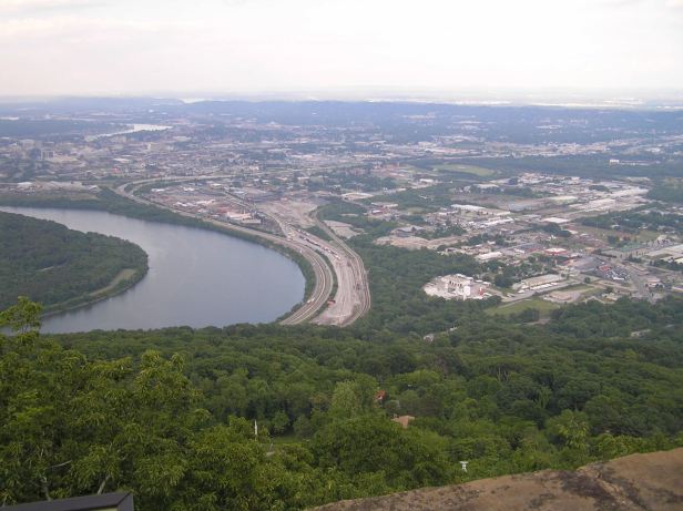 My first destination of the day was Lookout Mountain which was back in Tennessee and which was the site of a famous and ferociously fought battle on November 24th, 1863 during the American Civil War. I left Muscle Shoals southbound on the 72 by which I had entered it before switching to the enigmatic ALT 72 and heading east. I crossed the wide Tennessee River at Decatur, where the road became the I-565 before reverting to being the 72 proper just north of Huntsville, where it was rejoined by that road. I supposed I could have somehow got there on the non-ALT 72, but it was, by then, too late. The 72 went first south-east and then north-east as it followed a curve in the Tennessee River and I rode along with the river to my right. In keeping with the local policy of confusing outsiders (or possibly just Yankees) the 72 was periodically billed as both the 72 and the 2…….