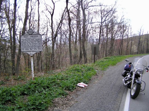 So, I set off west along Route 250 and soon entered some green and lonely country that was the floor of the Shenandoah Valley and that was slowly rising the farther west I travelled. There was the occasional little town, but the scenery was unremittingly rural and the road, even on a Saturday morning, was totally deserted. As I had started to climb out of the valley, the odometer clicked over 110 miles, so I had mentally resolved to fill up at the next opportunity. I assumed I would soon come to a petrol station. I really should have learned by then that assumption will quickly come back to bite you, but, of course, I had not. Since returning to the more populated east, petrol had never been a problem to find, even in the mountainous regions of Arkansas, so my guard had dropped a bit. Of course in the first town, there was a petrol station, but it was closed. In the next three towns, which were not exactly close together, I did not pass by, or even see, a petrol station, although I was on the principal thoroughfare. Still, I reasoned, this was America, there would be others. When I came to the State Line, I stopped for my souvenir photograph and noted that I was in Pocahontas County, I also noticed the odometer now showed over 150 miles. Classic dilemma. I had not seen a petrol station in the last 25 miles and I had no guarantee that the closed one, now over 35 miles away behind me, would, by then, be open.