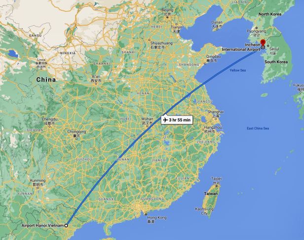 For information, we left at about midnight and flew to Seoul in South Korea.