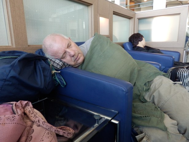 We had rather a long layover, which David did not really notice because he can sleep anywhere – so he did.