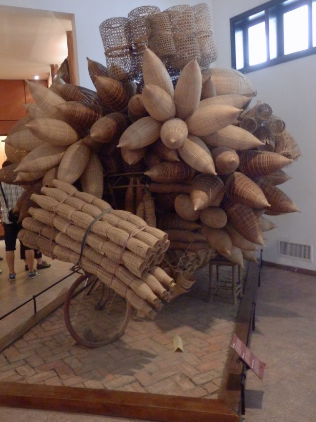 Outside, there was quite a good open air exhibition. It detailed the architectural differences specific to the dwellings of each ethnic group, or to be blunt, showed what kind of flimsy shack each grouping preferred to build. There were no mansions with parking spaces for a black Mercedes that characterised the architecture favoured by the communist elite. Sadly, there was a large group of giggling schoolgirls doing the tour and for incomprehensible reasons each girl was photographed with each house at least once. It was almost impossible to get a photo of anything without a schoolgirl in it somewhere. We tried to photograph the dwellings, in the order of the catalogue descriptions, to help with the later identification if we thought we needed to do it it. But, in reality, I doubted that we would be able to identify the individual buildings once again.