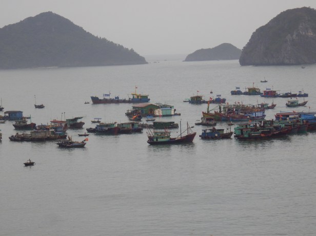 The next morning in Halong Bay, the weather soon made up for what it owed us from the day before. There was a bit of a haze in the morning but, as we left the hotel to gather more companions from various other hotels, the sun came out and shone brightly.