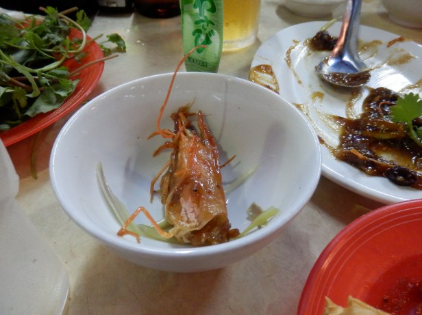 On the way back to the hotel, we got lost. If I had been to blame for this, I would probably would not have mentioned it, so it is probably clear WHO was to blame. Suffice it to say that, at one point, we went in completely the opposite direction to the one we needed to go in. However, if it had not been the fact that we got so seriously lost, we would not have found the seafood restaurant where I had the best Tiger prawns that I have ever eaten. Full stop. Oddly, having initially rejected fast food, we ate more or less on the street in a really dismal looking place. The very sight of the prawns attracted me to the point where I was willing to risk not only the generally unhygienic looking environment, but also, forgive me please, the most awful toilets I saw in the whole of Vietnam.