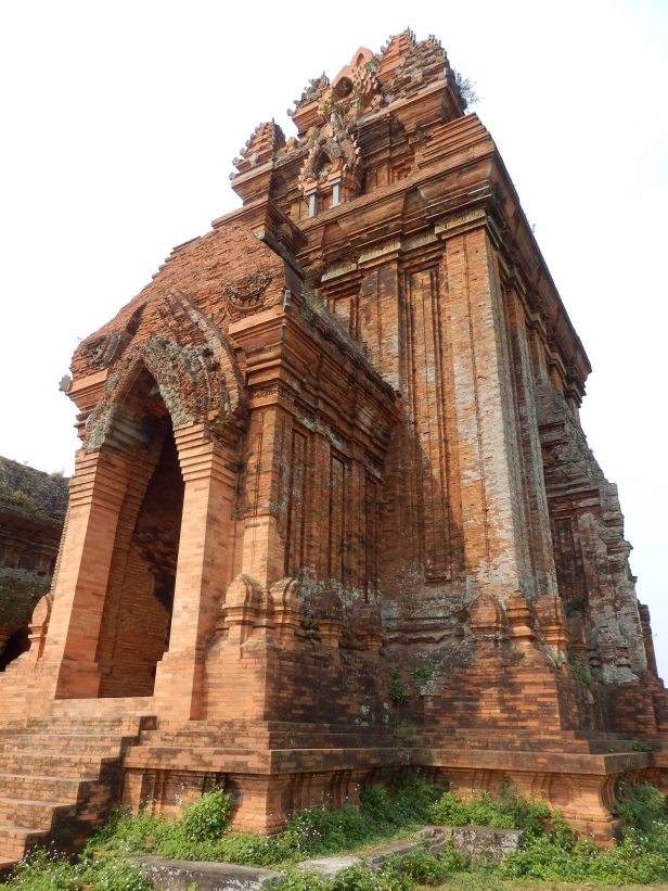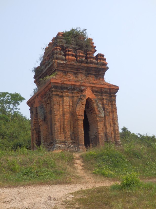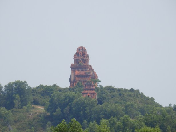 Almost at once, as we began to climb into the hills, we could see what looked liked some ancient structures. We took a small diversion and found some very old, brick-built constructions that looked as if they might have been temples. There were no explanatory notices and no mention in the Lonely Planet, so we did not really know then what they were. Later, after we had taken an “official” tour to another, similar, complex, we concluded that they had probably been built by the Cham people. They were still quite impressive to see and to go into.