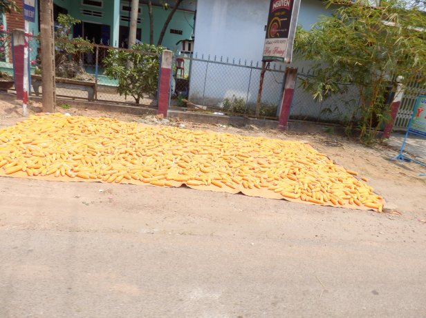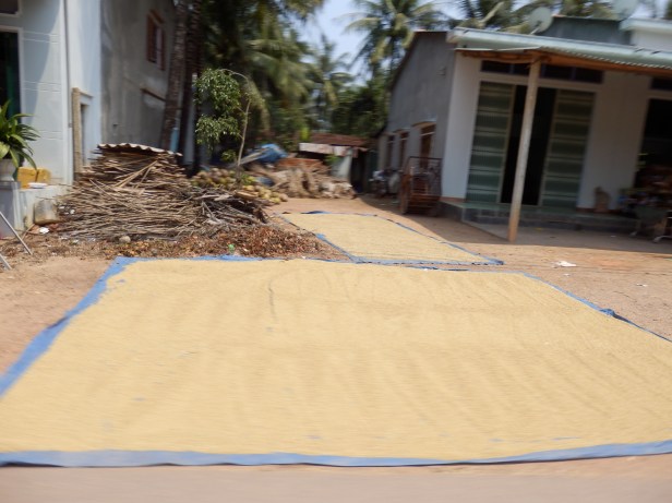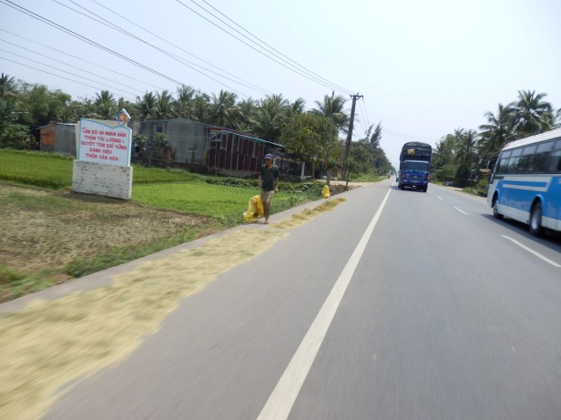 On we went. As on the previous day, the local people were all using the moped lane to dry their crops in the very warm sun. Progress was, as a consequence very slow and we had to take care when we were being overtaken. I think it is safe to say we were both pretty sore.