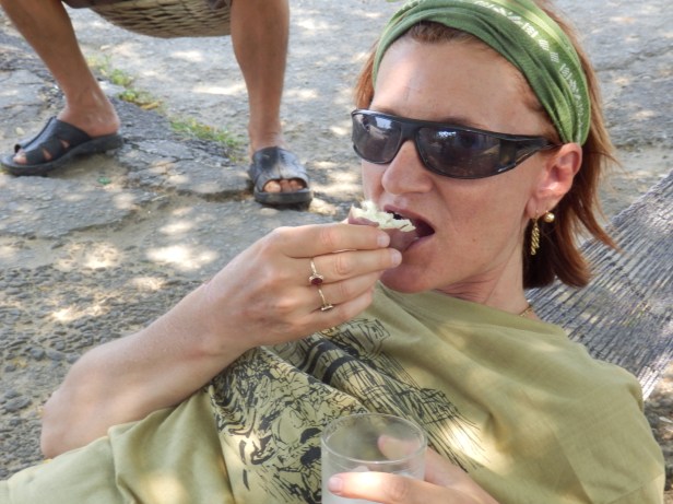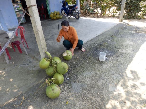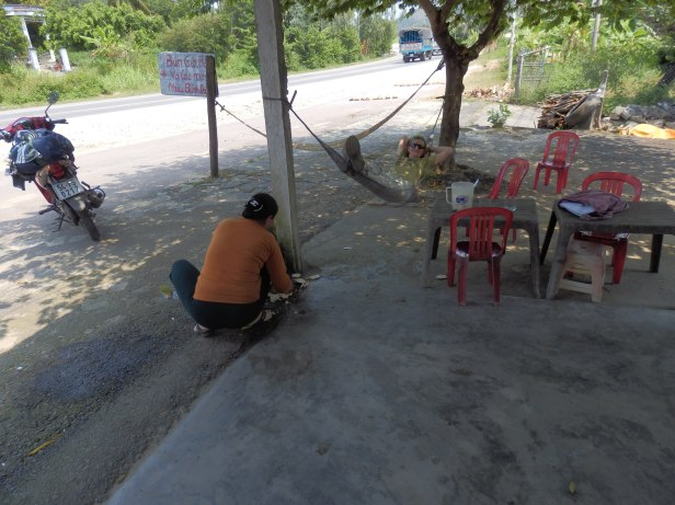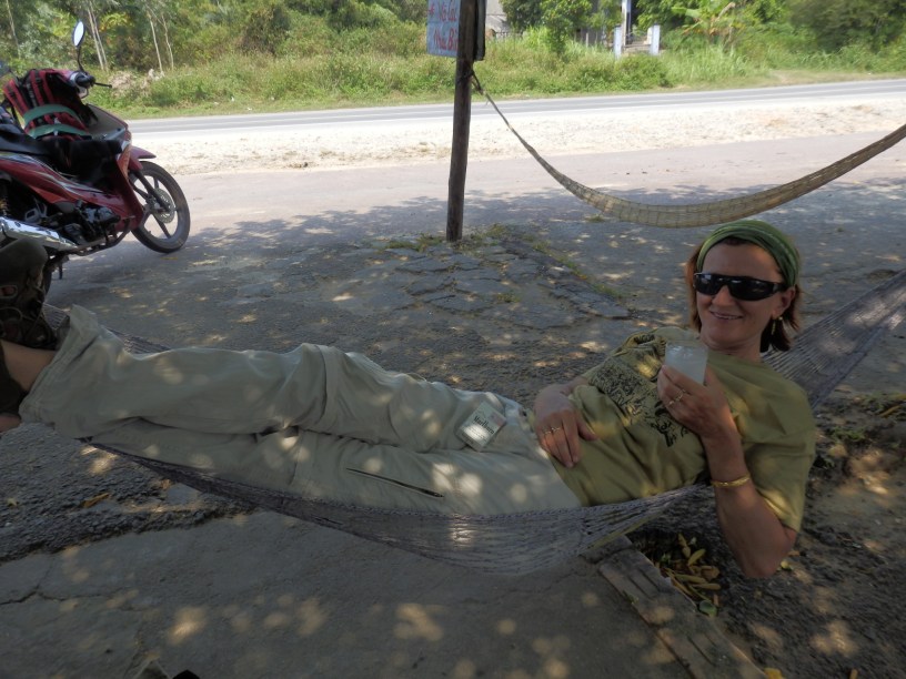 We probably made more stops than we needed to, because we were suffering a bit. So, when we spotted a stall selling coconut drink, we took another break. Again, the lady proprietress showed a rather scary proficiency with her machete. As David said, I would not want to start an argument with her ! I was able to relax in a handily placed hammock while I drank my coconut milk. She also offered me, what I think was, a sweet potato to eat. It was delicious.
