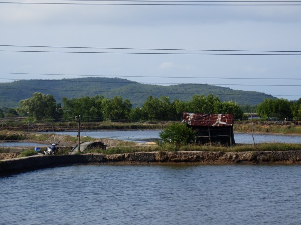 Anyway, at the “nuc mía” stop, we decided to push on, that day, to a place called Van Gía (also, for some reason, called Van Ninh). According to our map, which you may recall was a second or third generation photocopy of something from the 1970s, it had a long beach and so we hoped to find a hotel. We set off again, but when four o’clock came and went and evening was starting to come, we still had not got there.