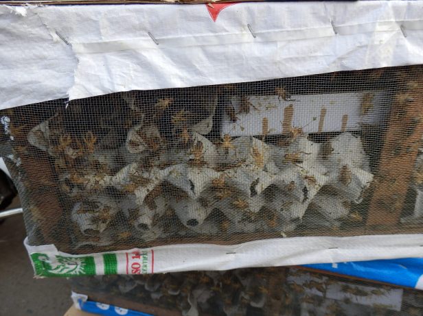 At our second stop, there was a moped parked which had a box full of big grasshoppers or possibly locusts on the back. Apparently people eat them ! We also contented ourselves with something very yellow – but this was a very tasty fruit that I could not identify.