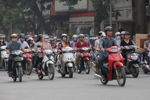 I remembered that, near to our hotel from the very first night was a slightly more “luxurious” one. It was already evening and we had already proved capable of finding our first hotel in the dark, so we even had a fall-back option. On the way to the station we had experienced a real trauma, in particular a completely crazy passage through one roundabout. There were literally thousands of motorcycles and a few cars and about a tenth of the vehicles were driving in the wrong direction. Pedestrians were also frantically trying to step through the churning mass. It was not even rush hour then. Unluckily, we DID enjoy rush hour on the way from the station. There is really no word for it other than surreal. In both directions, on quite narrow streets, a column the width of thirty motorcycles. At the edges, people riding in the opposite direction, in two streams, milling pedestrians, some cars and, at the intersections, police officers who stand and switch lights manually. If that sounds bad, it was actually worse. I would have liked to have taken more pictures, but I had to hold the map in both hands and shout directions to David. All the time I had to hope I had it right, because it was impossible for either of us to read the street signs. David said he had to look in all directions at once, except up to the sky and he really wished he had two extra hands so that he could have held his head in horror.