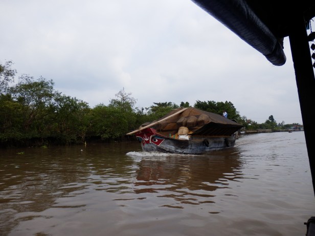 We finally managed to have some kind of “proper” tourist experience. There is quite a number of islands in the Mekong Delta and our original plan was to visit one of them and explore a bit. But, in the end, we changed our minds and decided to go on a classic sightseeing ride through the waterways of the Delta. We had wanted to see the famous floating market, but we missed it. It starts very early and, by the time we got to its location, just before noon, it was long gone.