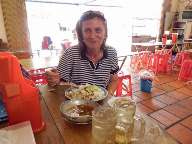 Our guide smiled at us all the way and said, if I remember correctly, just two words. When we were at the market, he said “market” and when we were on the way back to Vinh Long he called out “Hello“. He was smiling, from ear to ear, so I also called out “Hello“, which was a very popular English word there. Finally, we understood that what he really wanted was for us to climb on the bow to help the boat avoid getting stuck in the shallows. Almost miraculously, as soon as David moved forward by only ten centimetres, the stern rose from the mud on the river bottom and we were saved. Just stating a fact, not making a comment ….