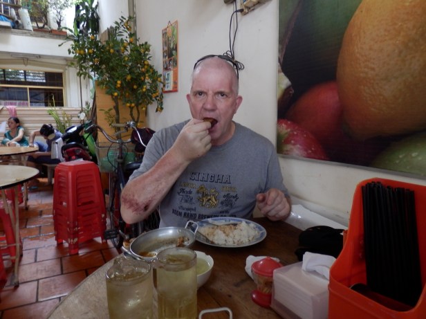 The very last stop was at a cafe where we were treated, if that is the correct word, to a song, from a Folk Group, about the life of a Vietnamese peasant. David calls it the “Grandmother, Grandmother, why did the banditos carry you off in a sack of potatoes song” and claims that every nation and culture has such a song. I believe the origins may be in some British comedy sketch, from the late 1960s, but it is true that, wherever we may travel, we do hear basically the same thing. On a personal basis, I was convinced that at least one tune was a love song along the lines of “My dear, I cannot marry you, but maybe my father will soften if you get a bag of rice so we can sow it.” Whether it is me or David that is right, we both seem to agree that there must be a bag of something in there somewhere.