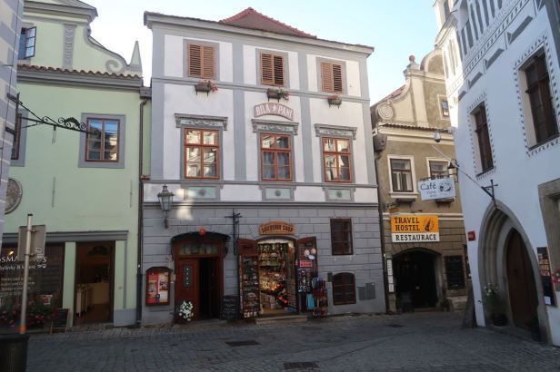 One thing that we did notice during our perambulations was that many restaurants were completely closed, so we did not dither when it came to our evening meal. Because it was still quite warm, we wanted to dine outside, if possible and so we selected Restaurant Jakub (Kájovská 54, Český Krumlov) because it had outside tables in a small square. The food was good, but not spectacularly so and Czech based. In particular. my desert of livanečky (buttermilk pancakes with blueberries) really did hit a nice spot.