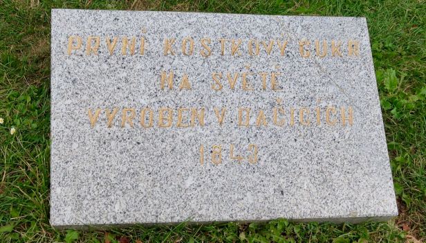 Unknown to Lucie, Dačice was actually my intended destination. I did intend to have lunch in Telč, that was true, but it was Dačice that we had actually been heading towards for the past two hours. Dačice has a rather unusual “claim to fame” and it was one of which even my Czech wife was unaware until we pulled up beside the memorial to that very assertion. It is not, in truth, an impressive monument, merely a simple cube of stone that even I might have been able to fashion, balanced somewhat precariously on a plinth. But, as it is intended to represent a cube of sugar, it is accurate indeed. It was in Dačice, in 1843, that the sugar cubes with which we are now all familiar were first fashioned and this mini-monolith pays homage to that event.