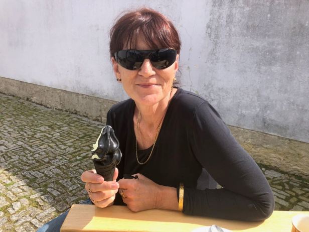 As we walked back to the Harley, we stopped and helped ourselves to a rather unusual, black ice-cream which was seemingly some local speciality. I do not know what flavour it was, but it was delicious. If you are ever there, get one. As we ate the ice-cream, quite suddenly the sunshine seemed to fade and it became noticeably cooler. Time to head home.