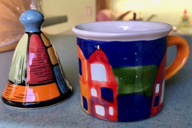 Lucie has long since had a desire to add a Hundertwasser bauble to our collection of Christmas Tree decorations and, as the gift shop was open, she went in to get one whilst I wandered around with the camera. In the gift shop she mistakenly began to speak Czech to the sales assistant, only for him to reply in Czech because he was of Czech-Austrian heritage. She was so taken by this that, in addition to the bauble, she also purchased a distinctive, Hundertwasser cup for her morning espresso.