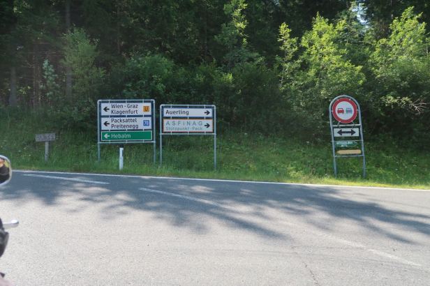 In pure black and white, we left the A2 motorway at junction 231 and took the road L158 towards Pack. At the first junction we took the road 70 towards Preitenegg, Köflach, Voitsberg and, ultimately, Mooskirchen where we rejoined the, errrr, A2. side The route is called the Packsettel (Saddlebag) and was about fifty kilometres long, although it seemed much further.