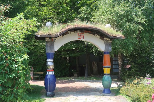 The church was also surrounded at intervals by arched gateways. Each of which was adorned by a symbol of another major religion. These included the Sauwastika (reverse Swastika) that is a symbol of peace in Buddhism, Hinduism and Jainism. That must have got them talking in rural Austria when it first appeared !