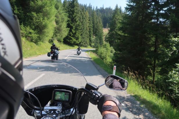 To be frank, it was not really a road for a laden Harley-Davidson with two passengers to be travelling at even our speed. Almost unbelievably, most of these riders managed to raise a hand in greeting, even at those speeds and Lucie was waving back almost continuously.