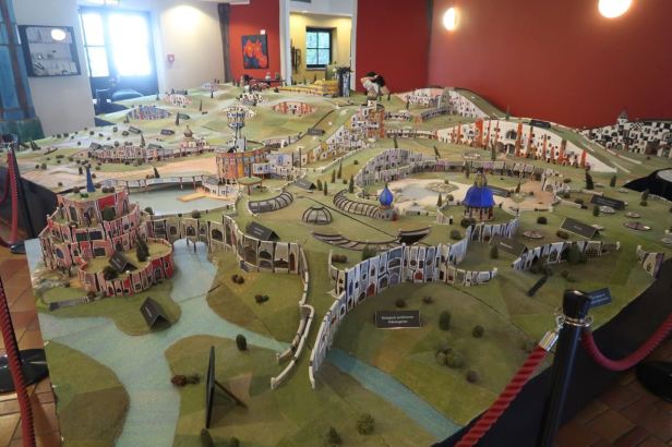 In the gift shop area, there was a model of the whole complex, which revealed that the part that we were able to see and explore was only a small fraction of the whole site. We poked around for a while and took a lot of photos. According to the model, there was supposed to be one particularly special building called “the snail” and we drove up a side road which should have led to it. Sadly, we could not see it anywhere.