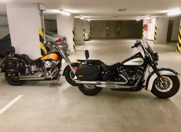 We ordered the Softail, in “normal” life, but, before we even picked it up, the COVID pandemic had swept across Europe. We know the people at Harley-Davidson Prague well and they are a friendly bunch, but because of the imposed “social distancing”, we collected it from a closed sales room. We were practically passed the keys and documents on long stick and they waved us off from yards away !