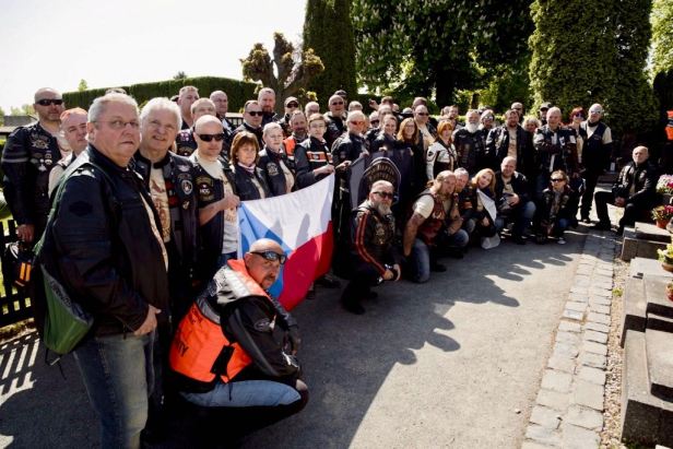 HOG Prague does love its group photos and we posed for one both in the cemetery itself and then another, proudly displaying our commemorative tee shirts, in the car park where we had left our Harleys.