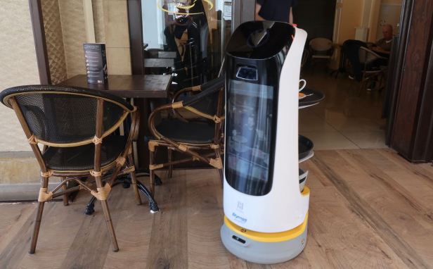 But the best thing of all was that, although our orders were taken by somebody breathing, the delivery was by a robot ! They were brought silently to our table by a mechanical device that, when it announced itself, proclaimed itself to be a waitress. Manufactured as “non-binary” but electing, in these odd times, to go XX. I have to confess I found it most amusing.