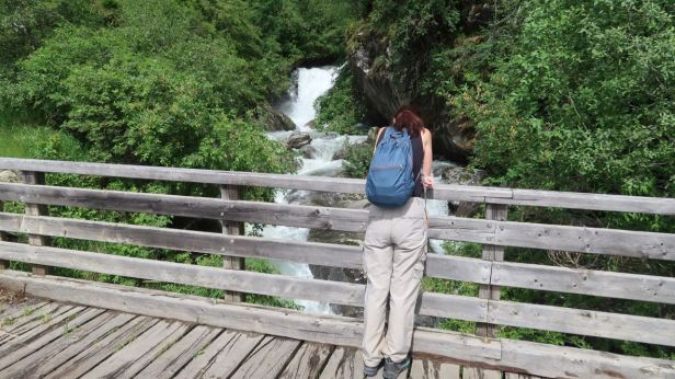 Although it was lunchtime, it was early in the season and there appeared to be no cafes or restaurants that were open. In the end, we almost hurled ourselves onto the same covered terrace of the Restaurant Garberstub that we had sat in on the previous evening. In fairness, I suppose that we did look more as if we had walked through, rather than around, the waterfall, but the youngish mother of a small family sheltering there literally let her mouth drop open as rainwater ran off of us and onto the tiles.