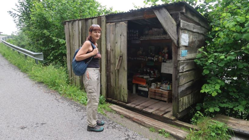 and a self-service shop with numerous local products. Unfortunately, nothing in the shop suited us, so we just left some change for a good cause.