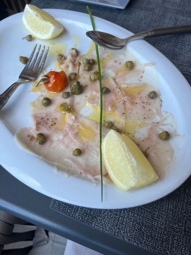 There was an Italian-style, four-course menu, but we limited ourselves to three, sharing a swordfish carpaccio (delicious)