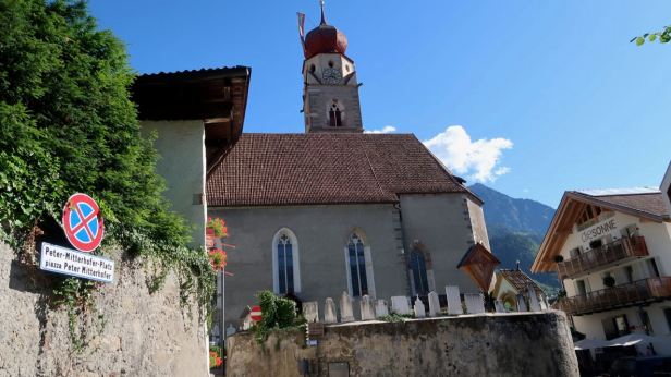 I walked back, past our pension and towards the town. Partschins is an apple growing area and the endless lines of “cordon” style young apple trees extended as far as the eye could easily see. Despite the earliness of the hour, tractors small enough to navigate between the rows trundled, at exactly the 30 kph speed-limit, up and down the road, all towing some form of spraying equipment. It was a friendly little town, each driver gave me a cordial wave and the few pedestrians I encountered all wished me a pleasant “Morgen” (Good Morning). As previously mentioned, it was quite hard to believe that, geographically speaking I was actually in Italy and not in Austria.